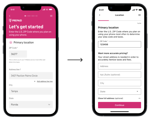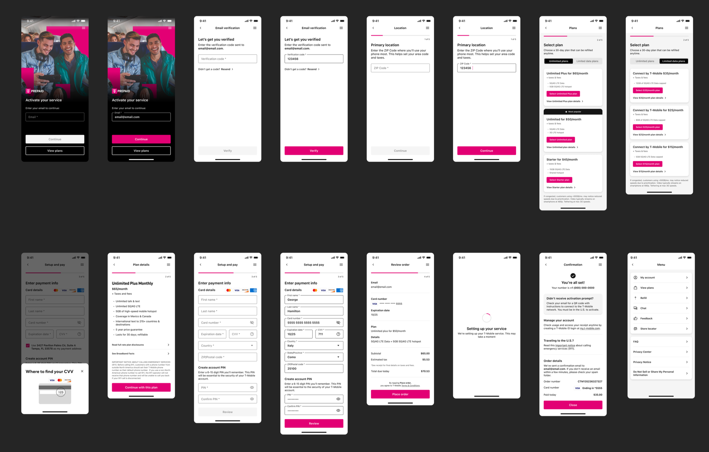 The T-Mobile Prepaid eSIM app is a web-wrapped app meaning it is a a mobile application that contains a website or web application within a native software container. This presented design system challenges that offers different components for app and web, plus other design considerations.